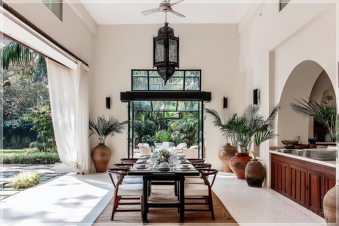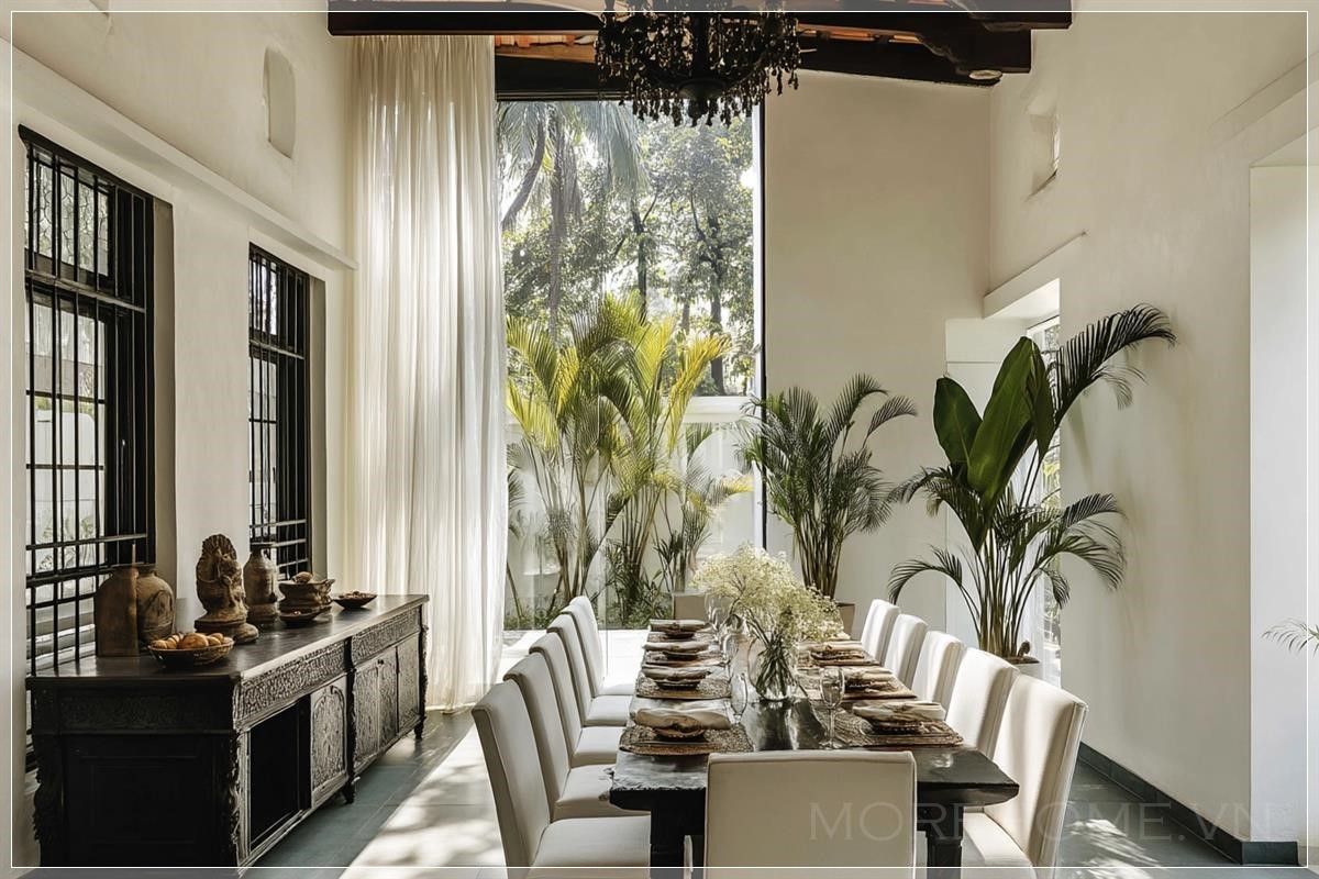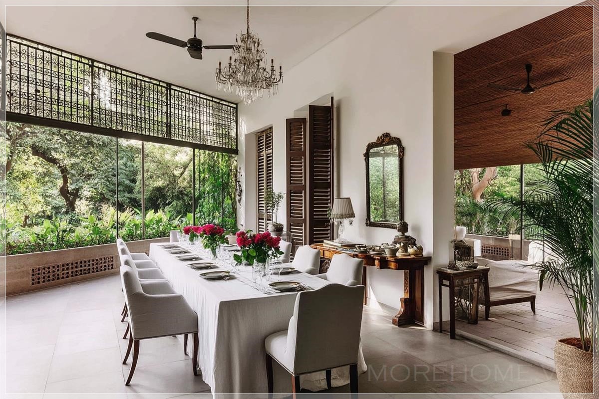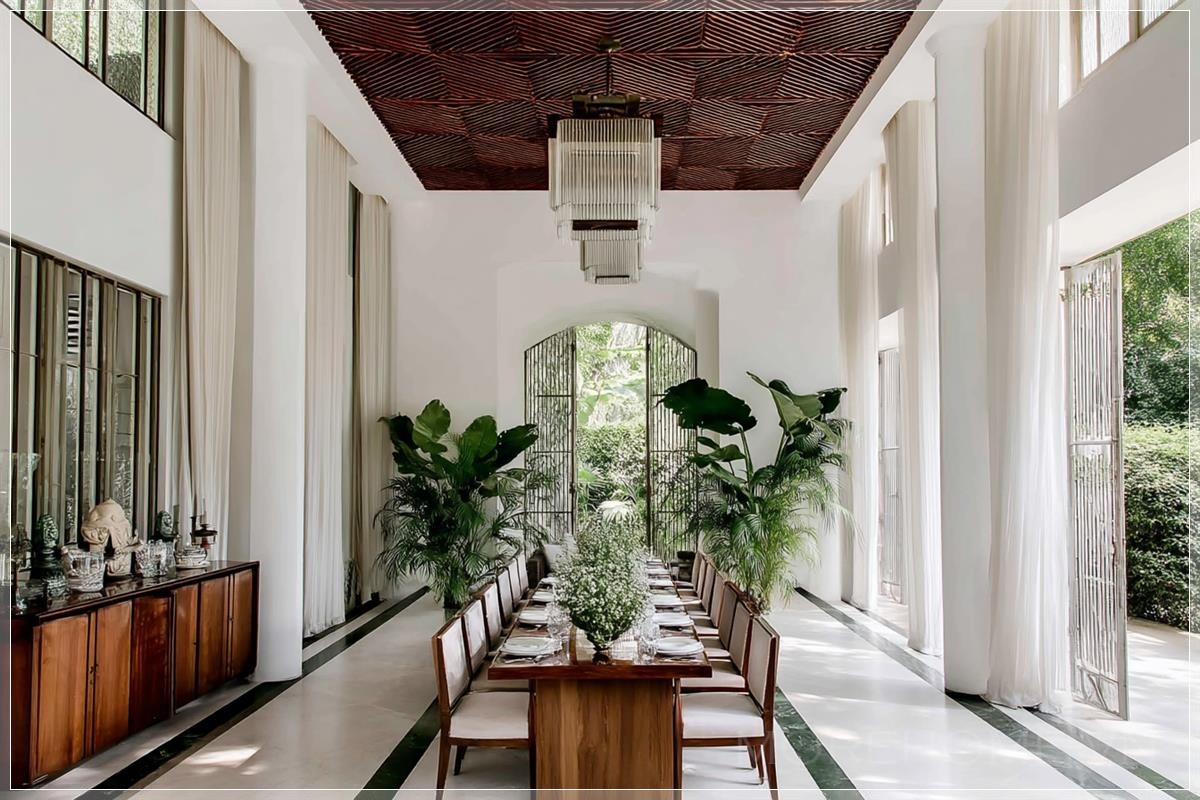 Thiết kế này khéo léo hòa trộn phong cách nhiệt đới hiện đại với nét thanh lịch kiểu thuộc địa - một sự tôn vinh đối với lịch sử phong phú của kiến trúc Ấn Độ đồng thời đáp ứng nhu cầu sống đương đại. Mặc dù không gian toát lên vẻ trang trọng, phù hợp cho những buổi tiếp đón sang trọng, nhưng vẫn giữ được sự ấm cúng cần thiết cho những bữa ăn hàng ngày của gia đình.