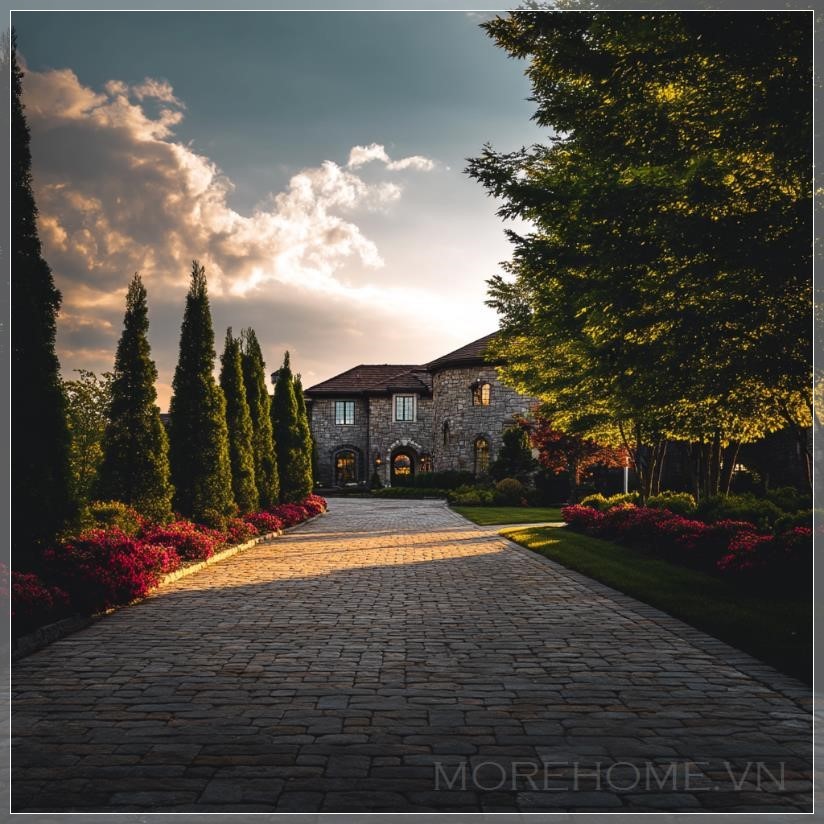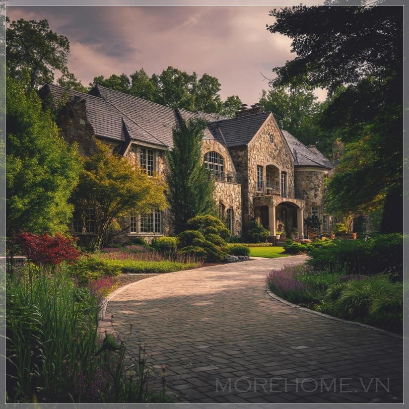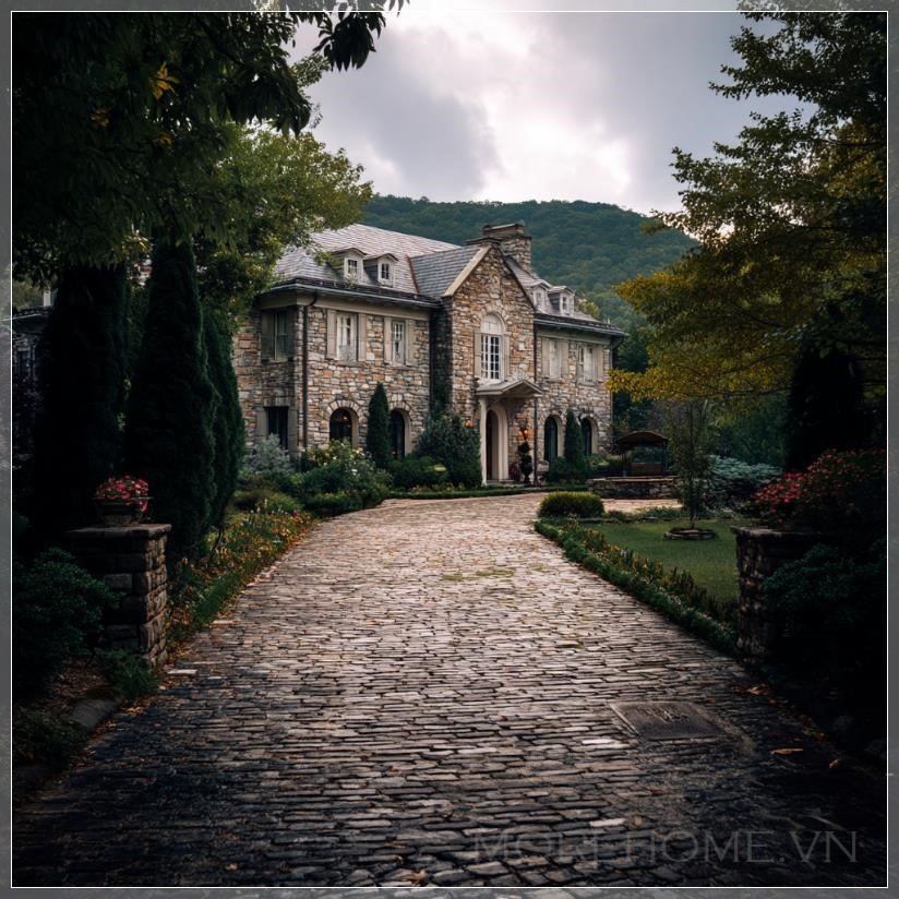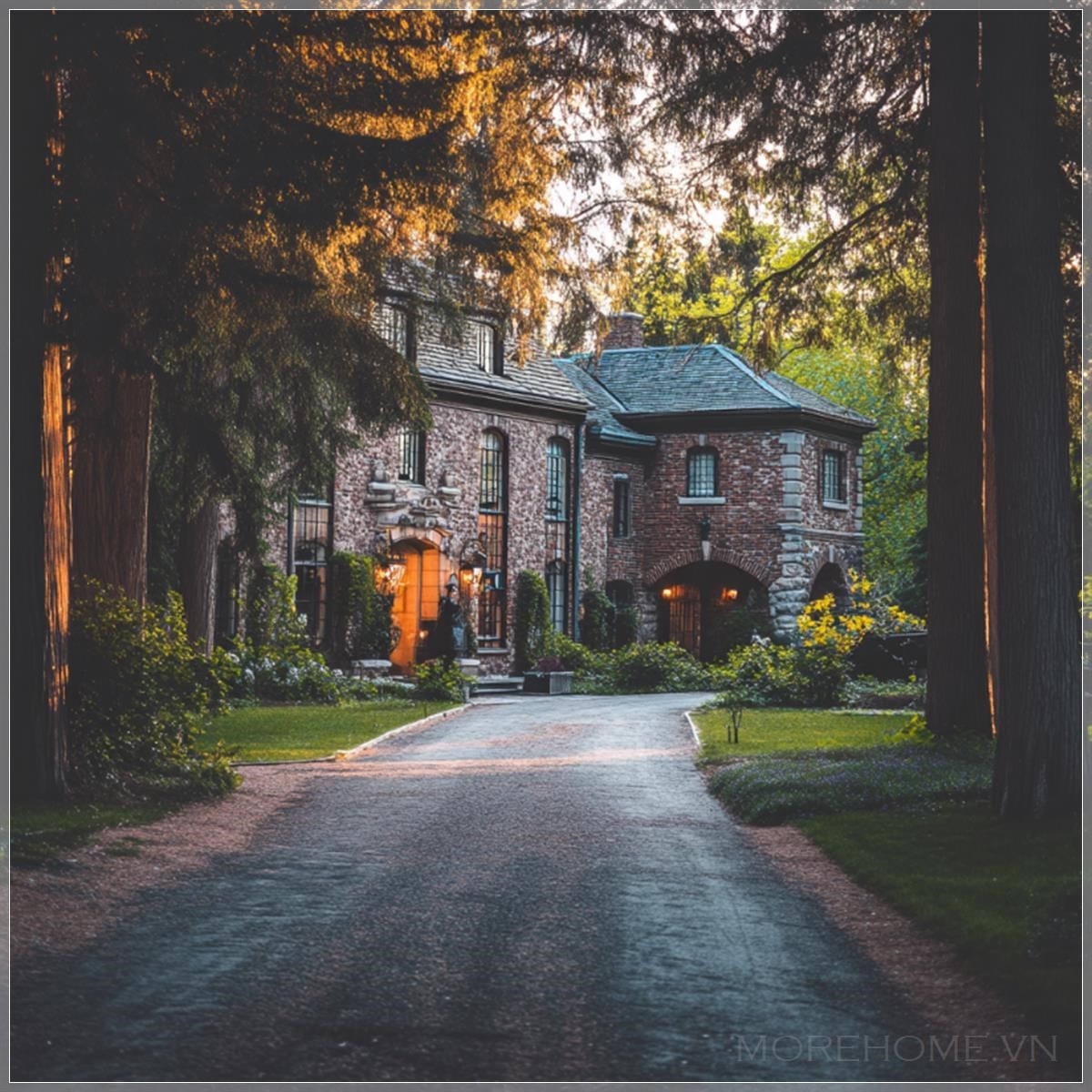 Ẩn mình giữa khung cảnh thiên nhiên tuyệt đẹp, dinh thự sang trọng hiện ra như một giấc mơ kiến trúc trở thành hiện thực. Con đường lát đá dẫn vào cổng chính như một lời mời gọi khách thăm quan khám phá vẻ đẹp tinh tế ẩn chứa bên trong. Đây không đơn thuần chỉ là một ngôi nhà - đây là tuyên ngôn của phong cách sống thượng lưu, nơi nghệ thuật giao thoa với cuộc sống hàng ngày.