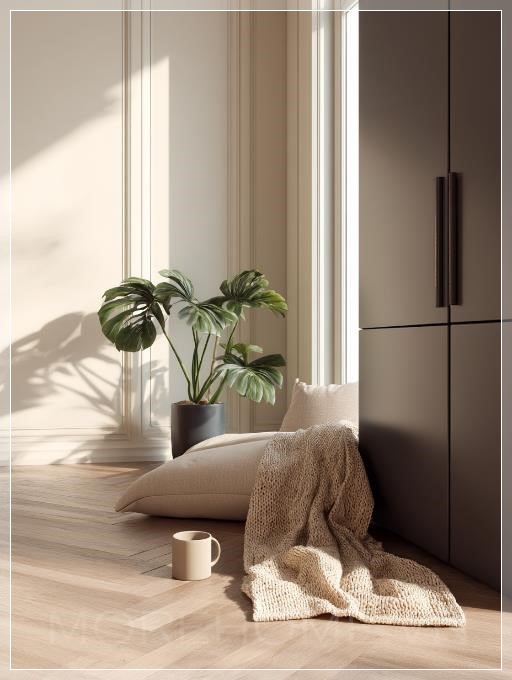 Những tông màu trung tính ấm áp - từ màu nâu gỗ tự nhiên đến trắng tinh khiết, từ kem dịu dàng đến xanh lá nhạt - hòa quyện với nhau tạo nên một bản giao hưởng màu sắc hoàn hảo. Không có sự đối lập gay gắt hay màu sắc la hét, chỉ có sự chuyển tiếp mượt mà như những nốt nhạc trong một bản ballad nhẹ nhàng.