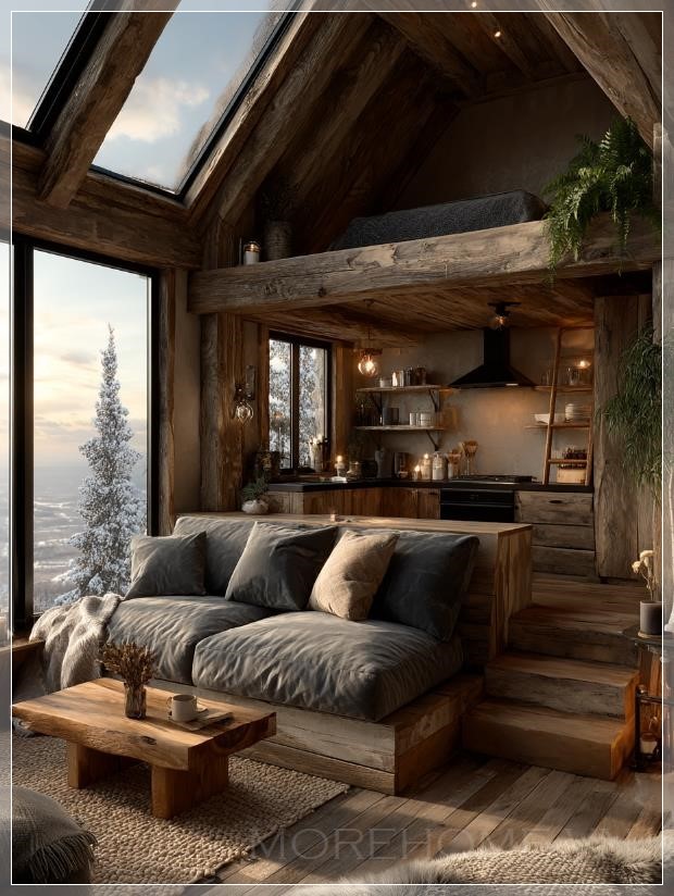 Đôi khi, bầu trời bên ngoài đột ngột chuyển thành một cảnh tượng hùng vĩ với những đám mây xám xịt và cơn bão đang đến gần. Dù vậy, không gian bên trong ngôi nhà vẫn luôn ấm áp, như một chiếc tổ nhỏ an toàn giữa lòng thiên nhiên hoang dã.