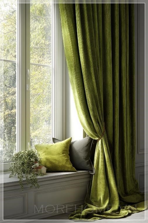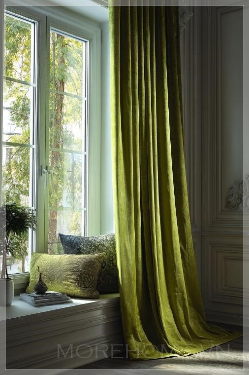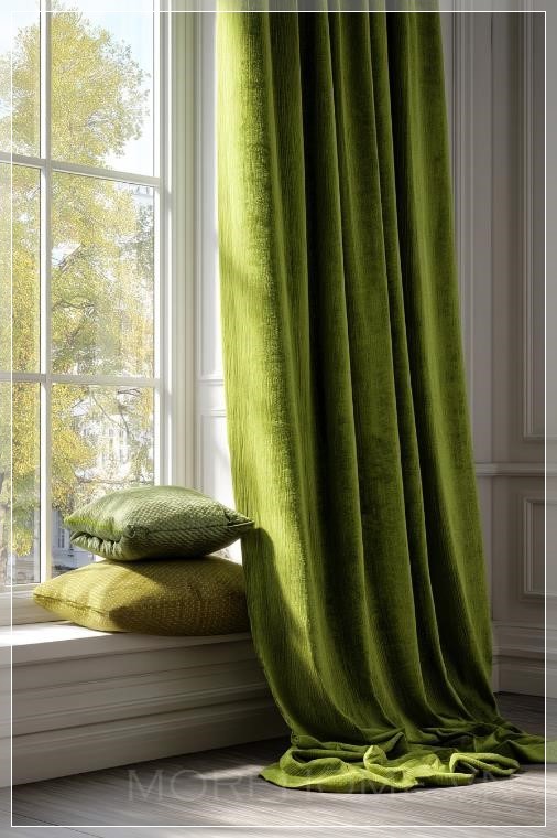 Ứng dụng của rèm xanh lá trong không gian sống hiện đại là vô cùng đa dạng. Được sử dụng không chỉ trong phòng khách mà còn có thể làm điểm nhấn trong phòng ngủ, phòng làm việc, hay ngay cả trong các không gian chung như hành lang hay phòng ăn. Trong không gian phòng khách, rèm xanh lá giúp tạo nên một góc thư giãn lý tưởng. Ánh sáng tự nhiên chiếu qua rèm, tạo ra một không gian sáng sủa và thoáng đãng vào ban ngày, trong khi vào ban đêm, sự mượt mà của chất liệu nhung giúp tạo nên không khí ấm áp, lãng mạn.