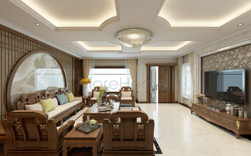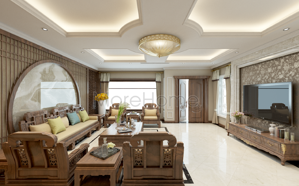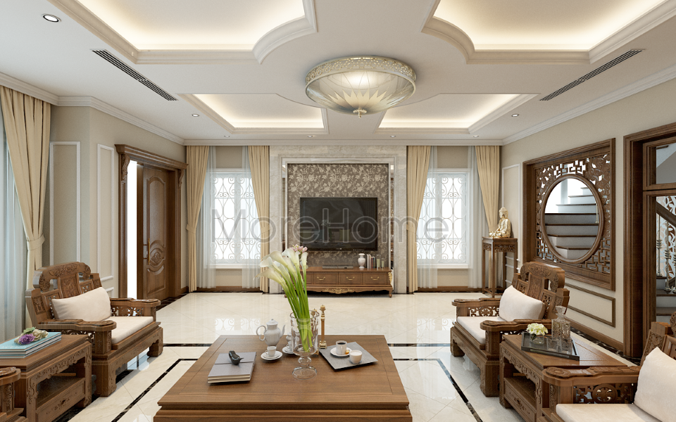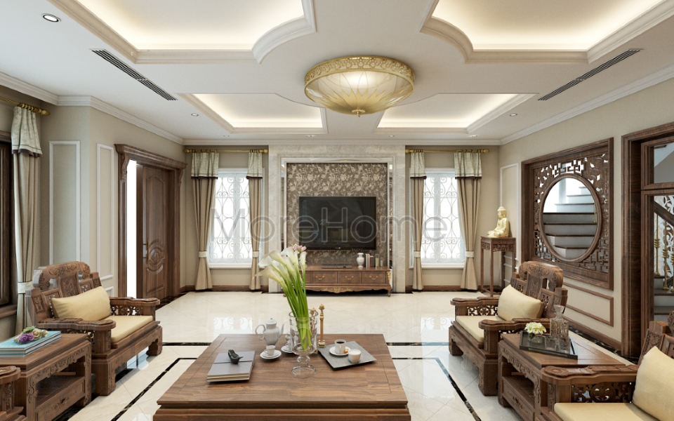 Thiết kế nội thất biệt thự phong cách Á Đông Riverside Nguyễn Duy Trinh