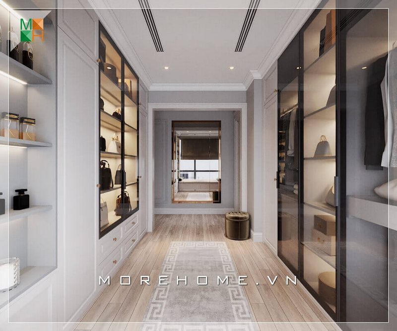 Thay vì thiết kế tủ, kệ đồ trong phòng ngủ thì nay việc thiết kế tủ, kệ để đồ ở hành lang đang là xu thế thiết kế mà nhiều gia chủ ưa chuộng vì vừa tiện lợi vừa mang tính thẩm mỹ cao.