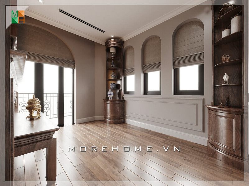 Tủ thờ kết hợp vách ngăn gỗ đẹp tạo nét trang trọng cho phòng thờ chung cư, biệt thự, nhà phố.