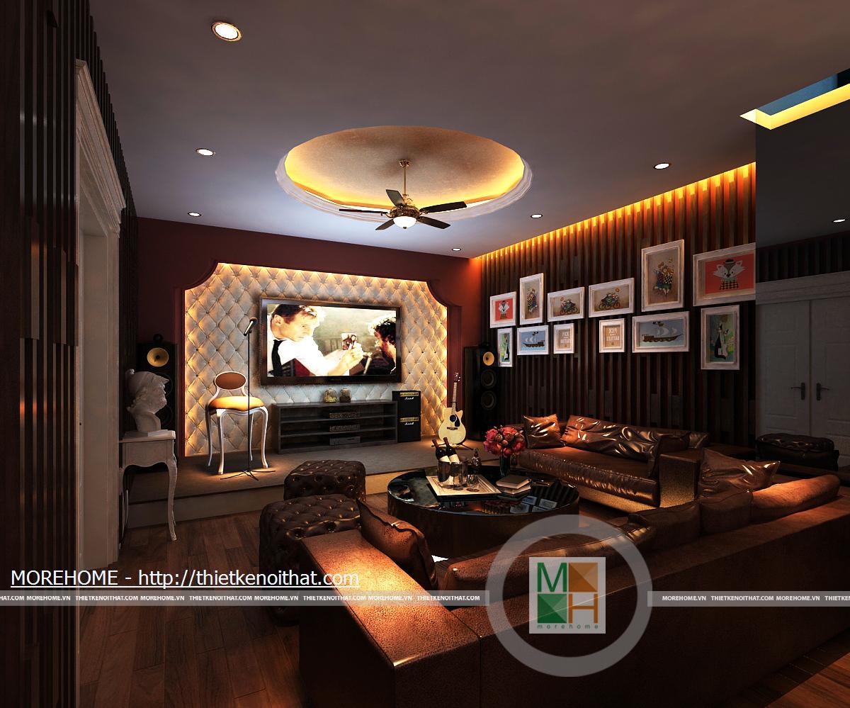 Khi mà cuộc sống ngày càng bận rộn thì gia đình lại có ít thời gian dành cho nhau. Chính vì vậy, mỗi khi có thời gian rảnh rỗi, các thành viên nên quây quần bên nhau trong không gian phòng hát karaoke tại gia thay vì ra ngoài. Nội thất của phòng karaoke rất được chú ý, tuy không phải là nơi các thành viên lưu đến nhiều nhất nhưng lại là nơi gắn kết mọi người bên nhau lâu nhất. Phòng hát được bọc nệm cách âm, thiết kế đèn chìm tạo không gian âm nhạc chuyên nghiệp, có sân khấu và hệ thống âm thanh, hình ảnh cao cấp, có bàn ghế sofa sang trọng và thẩm mỹ...