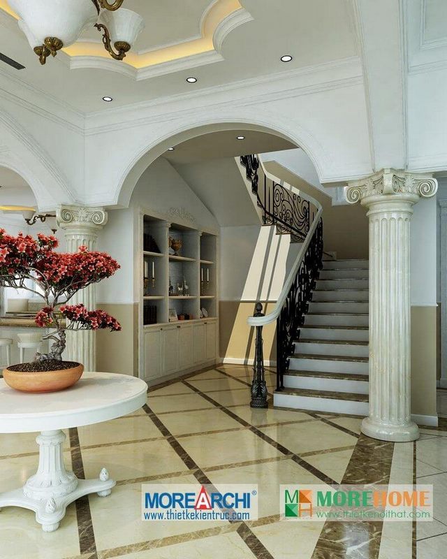 Một trong những lợi ích nổi bật của phong cách này là khả năng tạo ra một không gian vượt thời gian, giúp ngôi nhà không chỉ đẹp mắt mà còn thể hiện gu thẩm mỹ tinh tế của gia chủ. Những chi tiết trang trí cầu kỳ, từ phào chỉ đến đèn chùm lộng lẫy, đều góp phần tạo nên một bức tranh tổng thể đầy ấn tượng.